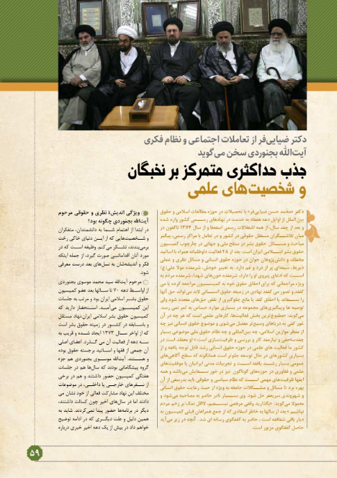 مصاحبه دبیر کمیسیون حقوق بشر اسلامی ایران با مجله حضور در خصوص مرحوم آیت الله موسوی بجنوردی